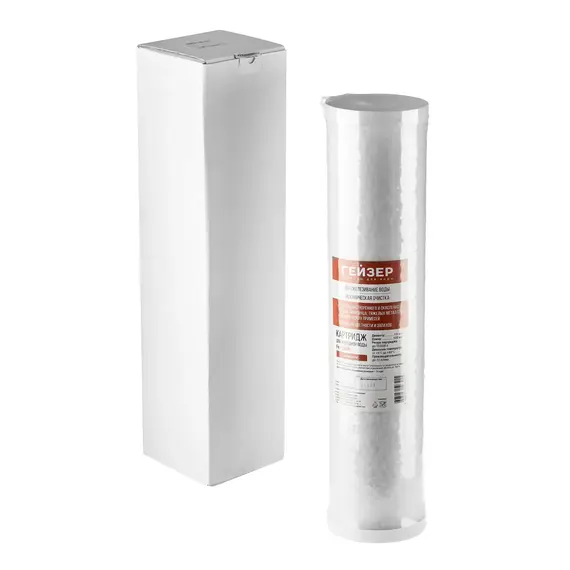 Картридж Fe BB20" выполнен из полипропиленового предфильтра (25-50 мкм), катионообменного материала, кокосового угля с серебром и постфильтра (с размером пор 5 мкм). Используется для очистки железистой воды. Рекомендуется при содержании растворенного железа до 2 мг/л.