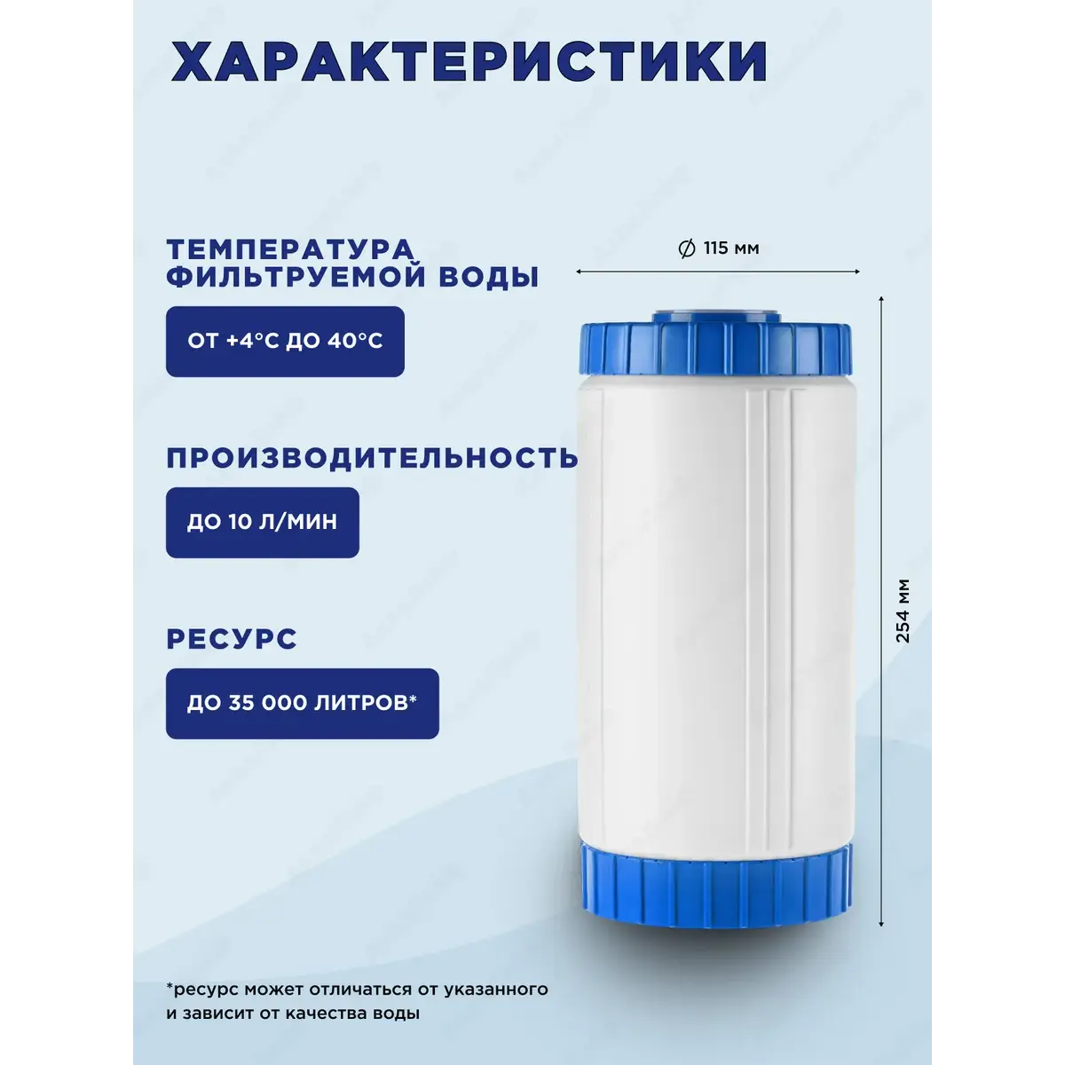 Ресурс может варьироваться в зависимости от качества и состава исходной воды.
