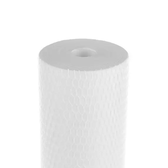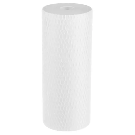 Картридж ПФМ 5/1 – 10ВВ изготовлен из вспененного полипропилена. Имеет градиентную пористость: диаметр поры уменьшается при движении воды внутрь картриджа, благодаря чему работает весь объем фильтрующего материала.