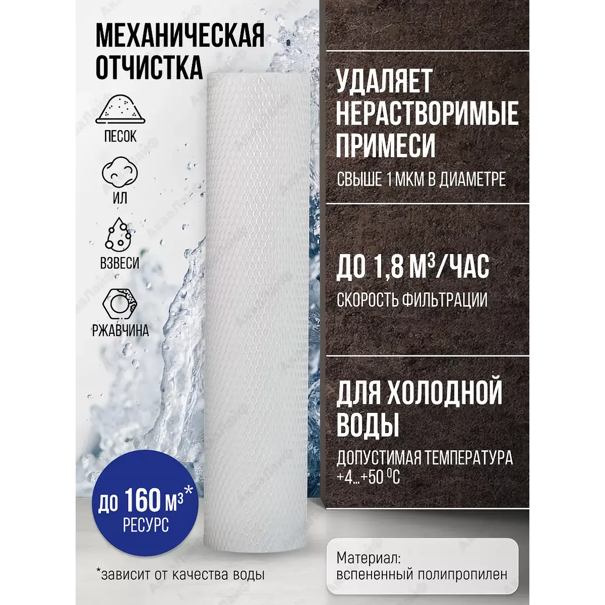Картридж ПФМ 5/1 – 20ВВ предназначен для очистки воды от нерастворимых примесей (более 1 мкм). Производство: Россия.