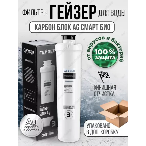 ГЕЙЗЕР Картридж Карбон Блок Ag Смарт Био