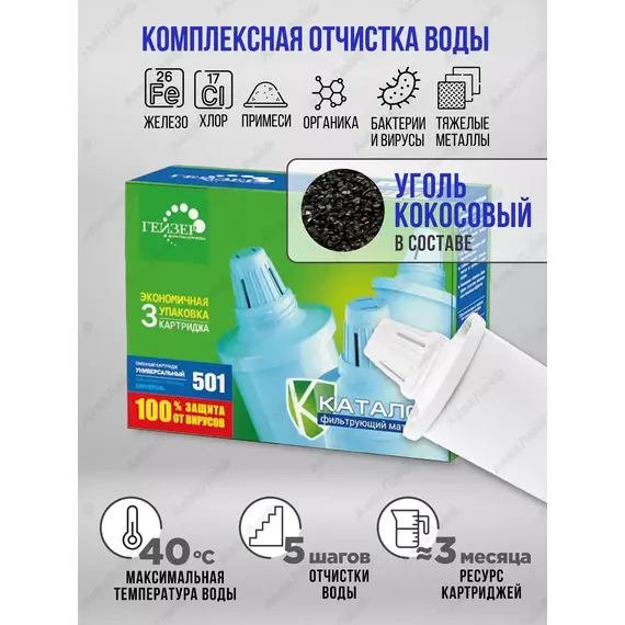 ГЕЙЗЕР Комплект сменных картриджей 501 (3 шт) Для мягкой воды
