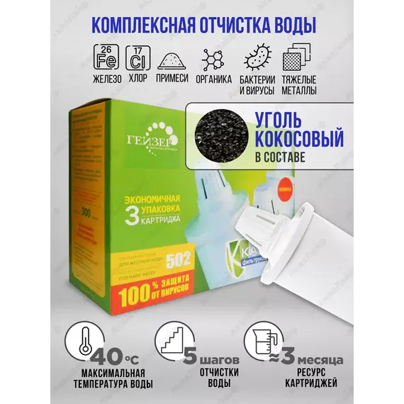 ГЕЙЗЕР Комплект сменных картриджей 502 (3 шт) Для жесткой воды