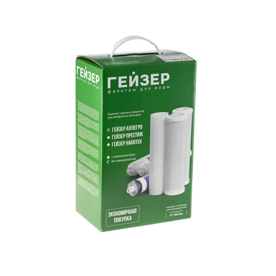 Комплект сменных элементов Гейзер Аллегро состоит из пяти картриджей, подходит для многих систем обратного осмоса: Гейзер Аллегро, Гейзер Престиж, Wise Water, Aqua Filter, Барьер и др.