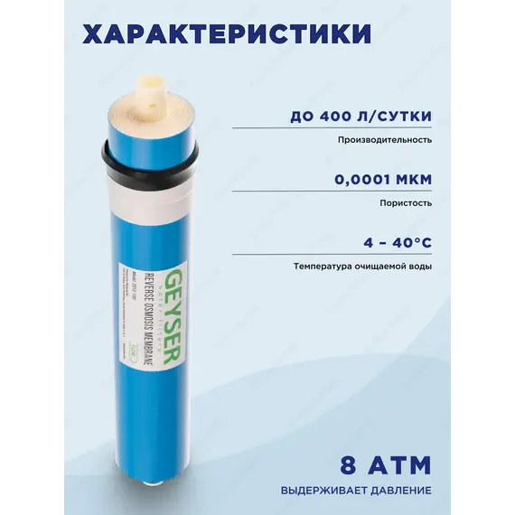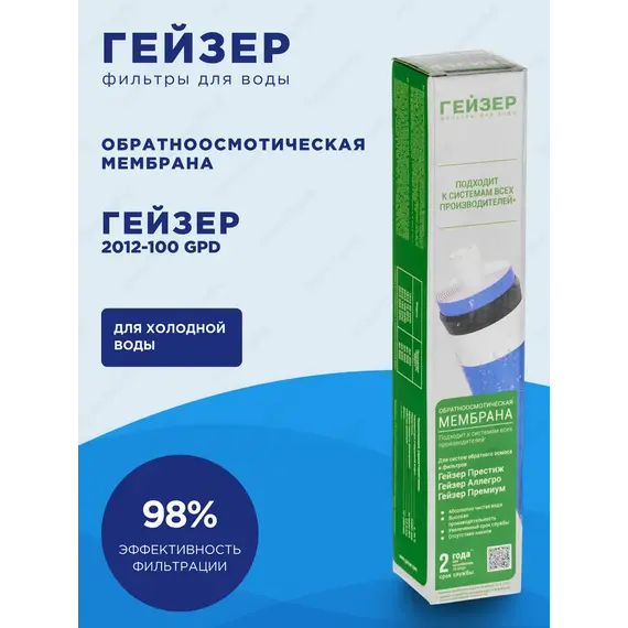 # Сменный элемент для систем обратного осмоса, предназначен для ультратонкой очистки воды от ионов растворенных примесей, органических и микробиологических загрязнений.# Мембрана для систем Гейзер. Производительность 100 Галлон в сутки.