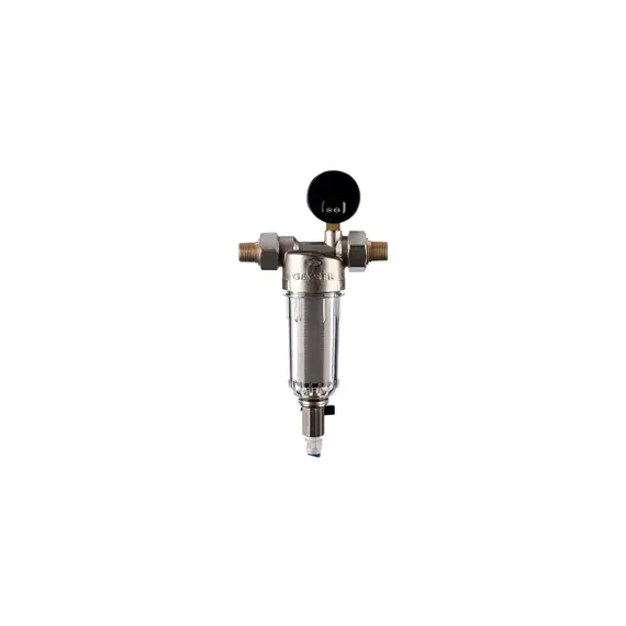 Изделие состоит из корпуса, манометра и промываемого картриджа. В обычном режиме вода проходит через сетчатый элемент к выпускному отверстию корпуса. Для осуществления промывки необходимо открыть шаровой клапан, выпускающий скопившиеся на дне чаши фильтра примеси; подача воды при этом не прерывается. Удобство слежения за степенью загрязнения фильтра обеспечивается прозрачностью его корпуса. Фильтр имеет большой запас прочности по максимальному рабочему давлению.