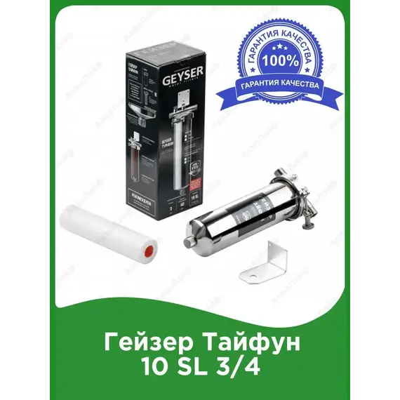 **Фильтр Гейзер Тайфун 10SL 3/4** производит тонкую очистку горячей или холодной воды от взвешенных частиц. В фильтре Гейзер Тайфун 10SL 3/4 используется картридж ПФМГ 20/10 -10SL. Удаляет ржавчину, песок, ил и другие нерастворимые примеси. Улучшает показатели мутности и цветности воды. Корпус фильтра выполнен из высококачественной нержавеющей стали марки 304L. Внизу корпуса находится клапан слива воды для удобной замены картриджа.- Тонкая очистка холодной и горячей воды- Картриджи международного стандарта 10SL- Корпус из высококачественной нержавеющей стали- Присоединительный размер 3/4- Все необходимое для подключения фильтра в комплекте.