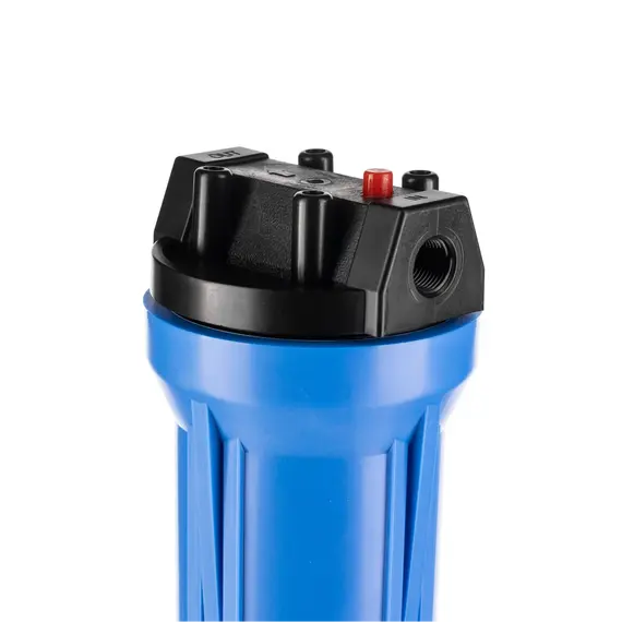 Корпус картриджного магистрального фильтра Гейзер C25 20SL без внутренних латунных вставок имеет входную резьбу 1/2". От протечек защитит уплотнение резьбы. Встроенный клапан сброса давления сделает обслуживание более безопасным. Материал изготовления – пищевой армированный полипропилен, безопасный для использования с питьевой водой.