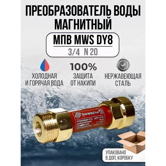 Магнитные преобразователи воды - устройства для защиты от жесткой воды и накипи, различные типоразмеры, экологичный метод обработки воды, длительный срок службы. Магнитные преобразователи воды MWS МВС Dy8 3/4- устройства из нескольких постоянных магнитов, позволяющие защитить трубы и оборудование (водонагреватели, котлы, стиральные и посудомоечные машины и пр.) от известкового налета. При применении магнитных преобразователей для новых труб и водонагревателей обеспечивается защита от оседания накипи и от образования очагов коррозии. При использовании преобразователей для уже установленного оборудования и для старых труб производится постепенная очистка от существующих отложений и формируется защитный антикоррозийный слой.Магнит на ТЭН. Фильтр стиральной машины. Защита посудомоечной машины.