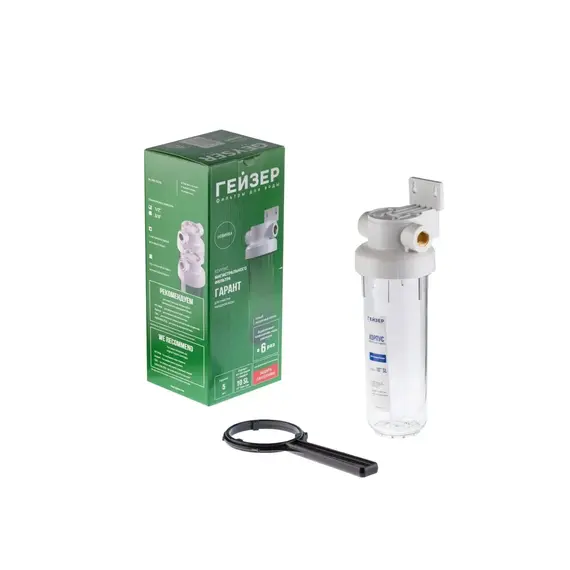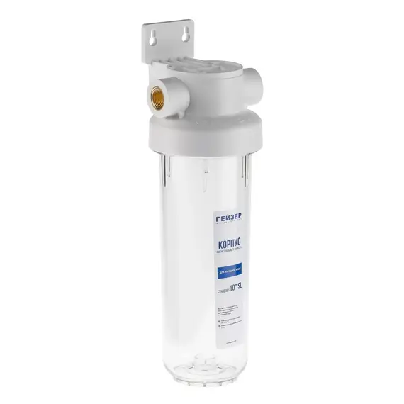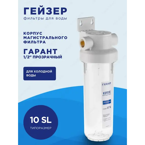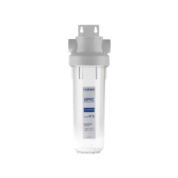 Корпус фильтра Гейзер Гарант 1/2" 10SL рассчитан на работу под давлением и установку на входе в систему холодного водоснабжения. Выполнен из суперпрочного пластика ПЭТ пищевого класса, который обладает повышенной стойкостью к механическим повреждениям.