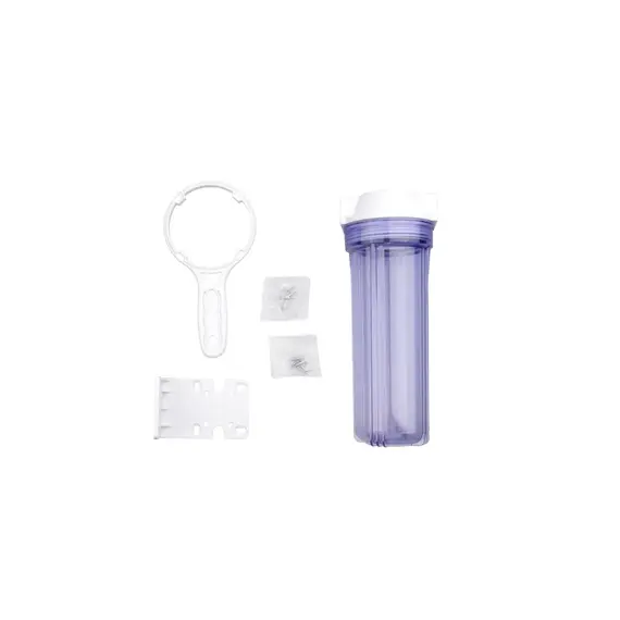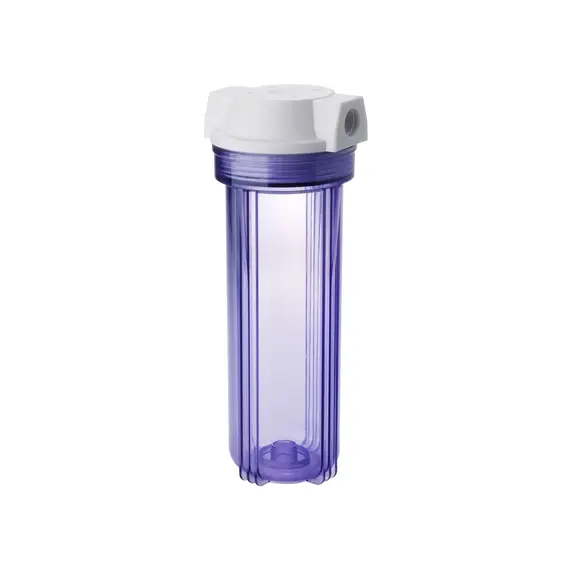 Корпус магистрального фильтра 10SL 1/2″ ВР прозрачный, без латунных вставок. Подходит для очистки холодной воды, может устанавливаться на вход в систему водоснабжения квартиры или дома.